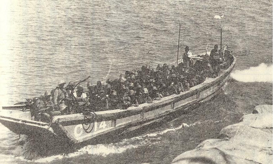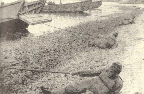 (能運載70名全副武裝的士兵或者12噸物資,被稱為“大發”(大發動機艇)的日本陸軍用登陸艇) 而這個“船舶工兵”的由來還是在上海,1932年8.13淞滬抗戰時,日本的第11師團在七了口登陸時就遇到了兵力如何從運輸船上運到陸地上的問題,陸軍自己到是有這種被稱為大發,中發和小發的各種登陸艇,但怎麼把這些登陸艇弄到登陸現場又成了一個問題。而海軍對解決這個問題也沒有什麼熱情,於是陸軍就準備自己干,海軍一聽陸軍自己要干就很開心地提供技術支援,因為這樣能夠多一事不如少一事。