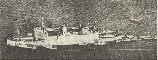 (“上陸用舟艇母船”神州丸,能看到邊上像母雞邊上的小雞似的特大發,大發和小發什麼的) 下面就是“秋津丸”和“島根丸”的照片,是不是怎麼看怎麼都是航空母艦?