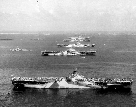 (“公牛”哈爾西) 大眼睛,濃眉毛,四角形的臉加上一張大嘴巴,你說像不像鬥牛犬,不像?那就是鬥牛犬長得像哈爾西,反正總是一個像另一個。 一般高級軍人都挺有文采,在日軍中不會寫一手好文章是爬不上去的。美軍的麥克阿瑟更是個中典型,他那句“老兵不會死,只是隱去”的名言可能會永遠地被所有的人引用,但哈爾西是個例外。和他的鬥牛狗面相一樣,無論怎麼有想象力的人也在哈爾西臉上也找不出什麼“睿智”的色彩出來,哈爾西所起草的命令,報告甚至私人信件中永遠是陳腐的遣詞用句,也找不到任何的比喻,反諷,強調等修辭手段,千遍一律的平鋪直敘,甚至罵起人都沒有創意的發明。事實上從金恩每次提起哈爾西起來就是“那個腦子不好使的笨蛋”。 軍人當然說粗口,但是能像哈爾西那樣滿嘴污言濁語的高級軍人真還不多。人們都知道哈爾西的名言:“殺日本人,殺日本人,殺更多的日本人”,此人胡說八道起來是無視任何社會慣例的,在他當然是口述的回憶錄里,他就公開指責第七艦隊的金凱德是“連煙酒都不沾的混蛋”,公開宣稱自己的旗艦企業號上就大量裝有蘇格蘭威士忌和波本威士忌,要知道那是曾經有過那部臭名昭著的《禁酒法》的美國。 在哈爾西手下打工是很要命的,哈爾西永遠在不斷地發出意義不明而又自相矛盾的各種命令,永遠在撤銷已經下達的前一條命令,因此部下永遠在疲於奔命之中,從這個意義上來說,哈爾西確實是一個笨蛋。 但哈爾西是一個在海軍和全美國極有魅力和人氣的笨蛋,整個戰爭期間一直在指揮着第58和第38這兩個番號的同一支特混艦隊的米切爾中將說:“哈爾西最強的是他的領導力,他身邊的人都仿佛是被一根魔杖點化了似的”。 其實哈爾西的能力本身也就適合當一個驅逐艦隊司令去指揮一個小部隊,但一個人有一個人的命,美國在太平洋戰爭開始時的慘敗需要有一個這樣的高喊“殺日本,殺日本,殺死更多的小日本”這樣簡單上口,富有感染力的猛將,到最後這位甚至兩次讓艦隊受颱風襲擊,遭受巨大損失的哈爾西居然能夠繼參謀長聯席會議主席丹尼爾·李,海軍軍令部長恩斯特·金恩,太平洋艦隊總司令切斯特·尼米茲之後並列美國海軍四大五星上將,功蓋雷蒙特·斯普魯恩斯之上也說明這加官進爵真是有命,還真沒有道理可講。 現在這頭公牛,或者甚至是能斗公牛的狗,又和日本人對面了。 應該說哈爾西的第三艦隊班子此時走馬上任對日本海軍也不是什麼壞事。不管包括莫里斯少將在內的美國戰史學家怎樣為斯普魯恩斯在馬里亞納海戰中的表現辯護,他們也只能說斯普魯恩斯沒有錯,而不能說斯普魯恩斯是對的,如果當時指揮的是公牛哈爾西的話,小澤治三郎損失的就不只是飛機了,他麾下的九艘航母還能有幾艘繼續浮在水面上很值得懷疑。 宿務島的一航艦受到空襲空襲,對日本海軍不止是一個噩耗,還是一個喪鐘的被敲響。這次空襲的極大成功其實是有點出於哈爾西意料之外的。參加空襲的美軍飛機幾乎沒有受到抵抗,哈爾西很驚異地發現日本軍隊在航空戰力上已經衰落得幾乎可以忽略不計了,於是就動起了提前直接進攻萊特島的腦筋。而美軍在占領塞班島以後本來是準備在9月15日左右開始進攻帕勞,10月15日開始進攻菲律賓的棉蘭老島和荷屬東印度的莫羅泰島中間的塔勞群島,11月15日開始進攻棉蘭老島,最後在12月15日左右開始進攻萊特島的。 尼米茲同意了哈爾西的大躍進計劃,羅斯福也同意,於是棉蘭老作戰被取消,萊特島作戰提前了兩個月。為了確保萊特島作戰的成功,從9月21日開始,哈爾西對呂宋,宿務,萊特這三個島上的所有機場進行了徹底的攻擊,經過這輪攻擊之後,本來就只剩下不滿200架飛機的一航艦就只有65架飛機,已經不能說還剩什麼戰鬥力了。寺岡謹平司令長官在日記里悲嘆“九月是苦月”,因為“九”和“哭”在日語裡的讀音相同。 但“九”在英語裡和“苦”沒關係,所以美國人過得很快活,9月23日美國人在帕勞作戰的同時占領了烏里希環礁。和同時開始的連陸戰一師都差點被打殘的貝里旈(Peleliu)作戰不同,美軍在這個和菲律賓,台灣,沖繩幾乎等距離的烏里希就只要把幾個日本人氣象兵和無線電兵抓起來就行了。 這麼好的地方日本人怎麼沒人看守呢?這是因為烏里希環礁有個問題,內海里暗礁很多,船進不去,所以日本人只能有時候在外海停一下船,但無法把它建成一個軍事或補充基地。但美國人不同,擁有稀奇古怪的工程能力的美國人在烏里希環礁內海展開了一場爆破作業,把那些探測出來的暗礁全部炸掉了,這樣一來烏里希環礁就成了美國海軍在太平洋最重要的後勤和補給基地。下面這張照片就說明了烏里希環礁的重要性:從前面看過去是埃克塞斯級航空母艦胡蜂,約克城,大黃蜂,漢考克(USS Hancock (CV-19))和提康德羅加(USS Ticonderoga (CV-14)。