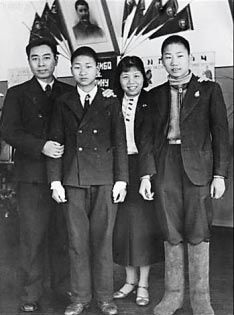 1942年,周恩来、邓颖超到苏联看望毛岸英(右一)、毛岸青(右三)。