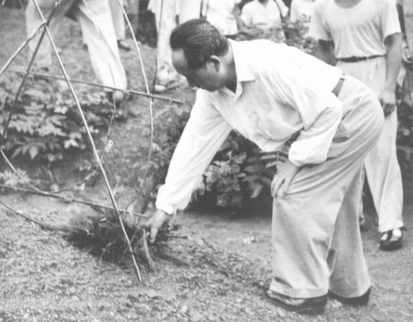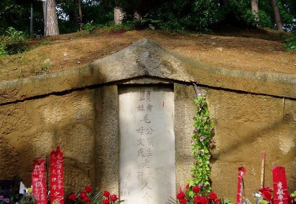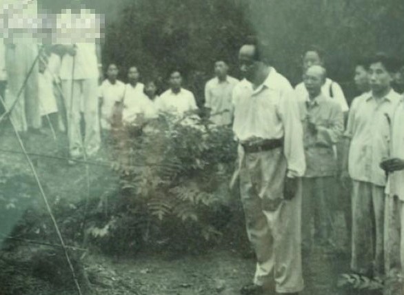 由於毛澤東一行頭天傍晚才到韶山,早上又走得匆忙,也不知道他一清早就去謁拜父母的陵墓,事前也沒有什麼準備。正在為難之時,沈同處長隨即就近找了一束松枝,遞給主席,主席滿意地獻在墳前,然後深深地鞠了3個躬,肅立在墓前默默地沉思着。