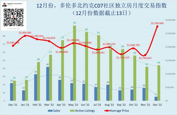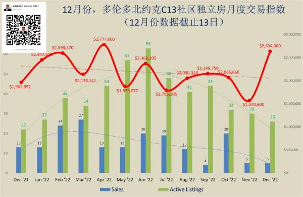 | 12月份(数据截止13日),北约克独立房屋月度交易指数统计图示 |