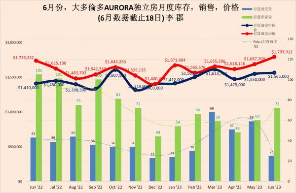 | 6月份(時間截至18日),大多倫多AURORA,東桂林,和新市獨立房月度交易指數 |