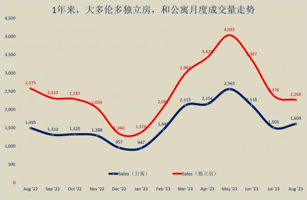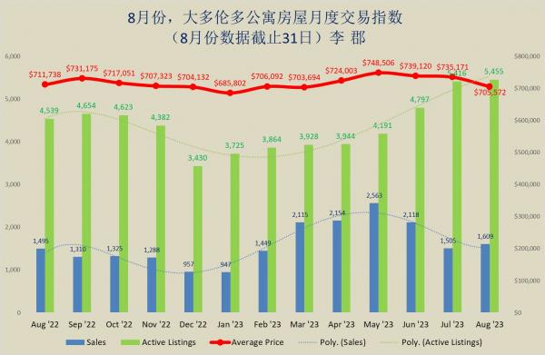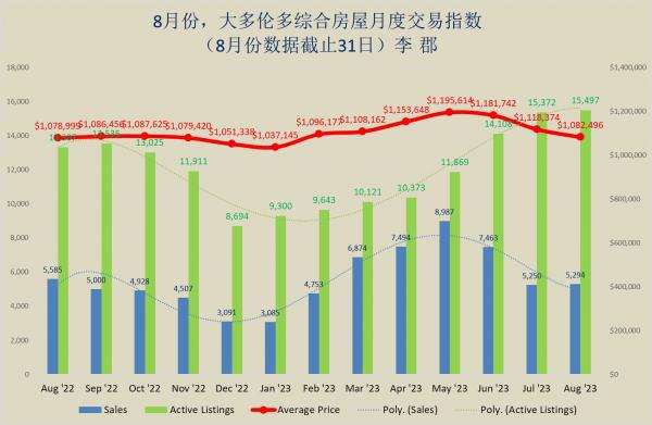 | 8月份,大多伦多都市圈综合房屋,独立房,和公寓月度交易指数 |