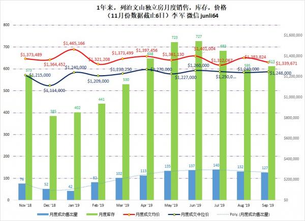 | 截止11月6日,丌锦,列治文山,和旺市独立房月度交易指数 |