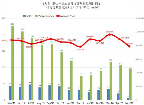 截止5月8日,AURORA,NEWMARKET,东桂林,和斯托夫独立房月度交易指数
