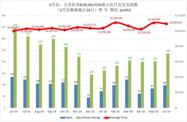 | 截止6月18日,OAKVILLE,BURLINGTON,斯托夫,和西桂林獨立房月度交易指數 |