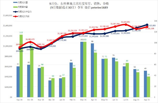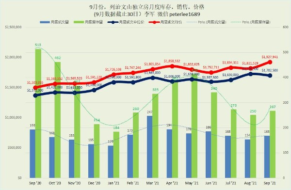 9月份,万锦,列治文山,旺,和新市等社区独立房月度交易指数