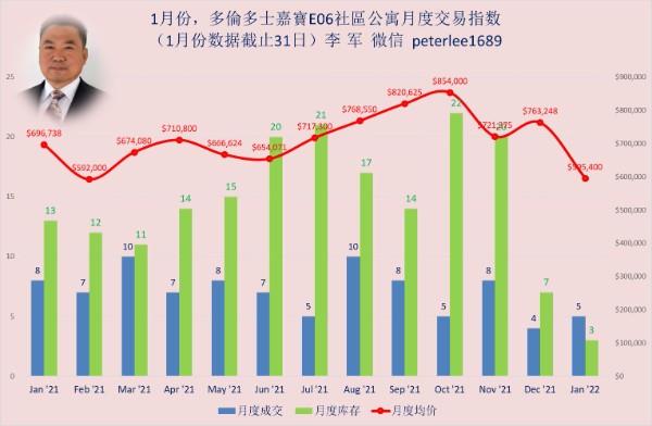 | 1月份,多伦多士嘉堡部分社区公寓月度交易指数 |