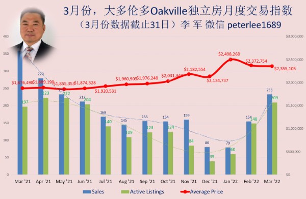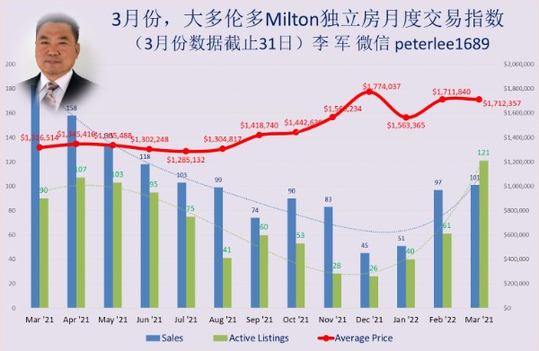 | 3月份,大多伦多OAKVILLE,MILTON等社区独立房月度交易指数 |