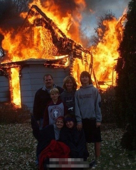 一家人看到房子失火,無法滅火,乾脆全家來張合影。 生活就該這樣,坦言面對生活,才能活出精彩! ![]() |
