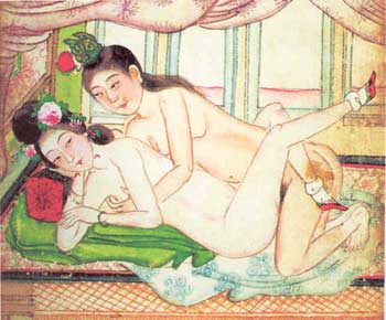 在《熙陵幸小周后图》上,元人冯海粟就题诗:“江南剩得李花开,也被君王强折来;怪底金风冲地起,御园红紫满龙堆。”意思是:宋太宗你强奸了别人的妻子,而你的后代(宋徽宗、钦宗和宗室嫔妃公主3000人)也被金人大肆强奸,这真是报应了。 可是,历史往往会走向反面,金人灭了北宋,肆意强奸北宋的后妃宗室和民间妇女,后来南宋联合蒙古人灭金时,南宋的军人也施加了性报复,有人还把南宋军人强奸金后的情景描绘下来,题为《尝后图》,意即“尝尝金朝皇后滋味之图”。在佚名作家的《樵书》中,曾提到这幅南宋末年的《尝后图》说: ……又有宋人《尝后图》:一妇人裸跣,为数人抬舁,人皆甲胄带刀,有啮唇与乳及臂股者,至有以口其足者。惟一大将露形近之,更一人掣之不就。又有持足帛履袜相追逐者,计有十九人。上有题云:“南叱惊风,汴城吹动。吹出鲜花红薰薰,泼蝶攒蜂不珍重。弃雪拼香,无处着这面孔,一综儿是清风镇的样子,好将军是极粘罕的孟珙”。 画中露出阳具准备强奸金后的将军是不是孟珙,有人提出质疑,但金被灭后,此情此景想必有之,即使孟珙没有这么做,别的将军也会这么做。无论是金人奸宋室后妃,还是宋人奸金室后妃,都是性暴行,女子都是悲惨的性牺牲品。 自明代下半时期以后,春宫画特别流行,那时这方面的名画家首推唐寅。唐寅字伯虎,一字子畏,号六如居士、桃花庵主、逃禅仙吏等,吴县(今江苏苏州)人。少年时学画于周臣,后结交沈周、文徵明、祝允明、徐祯卿等,切磋文艺,历史上记载他是个风流才子,诗、文、画俱佳。他性格不羁,有时用“江南第一风流才子”印,由于仕途多舛,就游历名山大川,专门致力绘画,以卖画为生。他长于人物,特别以仕女画见长。他画春宫画,与他的生活情趣有很大关系,也是他风流性格不羁的表现,可能也是对当时官场和社会的虚伪以及封建礼教的讽刺和反抗。有人说,他作春宫画以所眷恋的妓女、情妇为裸体模特儿,所以才画得那么传神,那么惟妙惟肖。 唐寅所作的一般仕女画,至今传世的有《孟宫蜀妓图》《班姬团扇图》《嫦娥奔月图》等,但其大幅绢本的秘戏图至今已不复见,只是在古籍中留下几首清人题唐寅春宫画的诗作,如“鸡头(乳房)嫩如何莲船(三寸金莲)仅盈握;鸳鸯不足羡,深闺乐正多。”“清风明月无从觅,且探桃源洞底春”等,让后人去想像、描摹。 唐寅还画了一套《风流绝畅图》,共有24幅,十分有名,但这套册页早已失传。 和唐寅可相媲美的还有仇英。仇英字实甫,号十洲,太仓(今属江苏)人,居苏州。他是工匠出身,后来也从周臣学画,为文徵明所称誉,从而知名于世。他主要以卖画为生,画春宫画也十分有名。他画全身着衣的恋人,也画裸体相交的男女。他从临摹古人名作下手,发愤苦学,兼取各家之长融一炉,从而创出自己精丽秀雅的绘画风格,终于能和唐寅、文徵明、沈周并列,成为明朝的四大画家之一。 人们认为明代后期是中国古代春宫画发展的顶峰,主要是指它的质,在量方面,清代的春宫画似乎较明代为多,也许是因为年代较近而存世的作品较多的缘故。从文献记载来看,清朝的春宫画能手主要有古濂和尚、王式、马相舜、马振、改琦等。 中国古代的春宫画虽然被许多人所喜爱,但总是有私密性,被认为不登大雅之堂,只能在私下把玩欣赏,所以极少有大幅者。 这些春宫画不仅在内宫、在官僚豪绅之家流行,而且在民间坊肆中也十分流行,这是明代的春宫画和前朝不一样的地方。由于流行广,需求量大,有些出版商又在印刷上下功夫,其技巧达到相当高的程度,明末尤甚。荷兰汉学家高罗佩认为最好的套色春宫画印于1606年至1624年,使用了五种颜色,这些画代表了套色春宫画的全盛期,它只流行了约20年。1644年清王朝建立后,这种艺术已完全绝迹。总的看来,清代春宫画似乎比明代流行得更广一些,但其画艺都在唐寅、仇英之下,印刷技术也远远地逊色了。 一门艺术或一门科学之所以在某个时期广泛流行和发展,总是因为它有许多功能而符合了某个时代的某种特殊需要。春宫画之所以从宫廷到民间不断地发展和流行,正是因为它有许多它物所难以替代的功能: 一是激发性欲的功能。人们感受性刺激,是通过视觉、听觉、触觉、嗅觉等感觉器官实现的,其中触觉、视觉占有十分重要的地位。 二是娱乐功能。在男女性生活中作为助兴工具,这是和春宫画的性刺激作用密切联系的。 三是教育的功能。即作为性学书籍的插图来昭示人们;或以“嫁妆画”的形式给女儿带到新郎家去,过夫妻性生活时照此去做。 四是辟邪的功能。例如“避火图”,认为春宫画能辟鬼神。 |