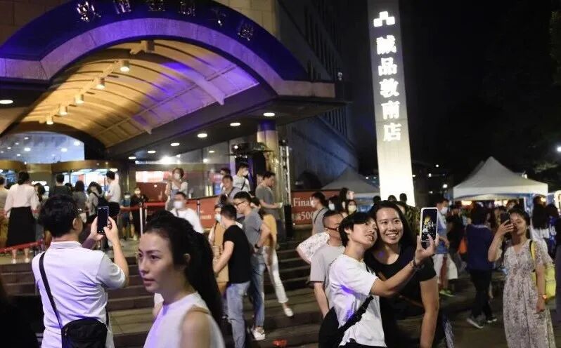 店外人潮汹涌,无数年轻人与大楼合影,他们在大雨中熄灯倒数,与敦南说着:“再见”。