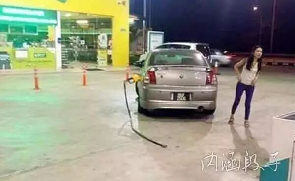 女司机:嗨,这根管子是你们加油站的吗?加油站员工:不是,是上一个站的。