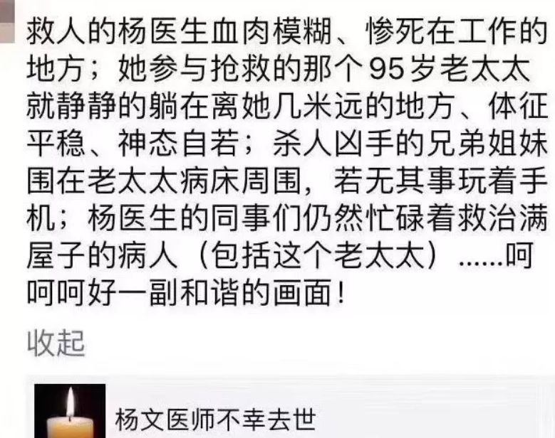 杨文医生之死最令人寒心的地方,不是她哪方面做的不好,而恰恰在于她什么都没有做错。