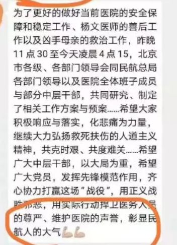 如果杨文是民航医院的领导,那么,在她生命受到威胁的时候,大概分管安全保卫的医院领导会安排人24小时保护。可惜,她不是。甚至,不用24小时保护她,只要医院在收到明确的杀人预警后,有针对性的在急诊科配备保安24小时监控,她也不会死。