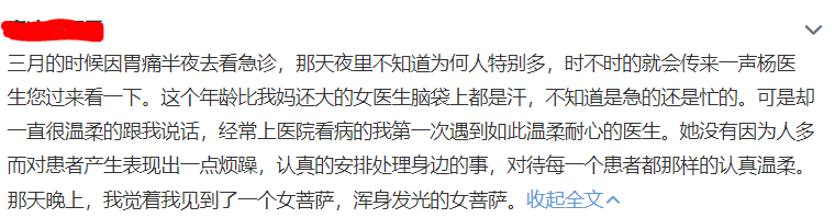 杨文医生死后,无数同事上级在悼念时候对她的评价出奇的一致:温柔,负责。