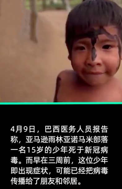 悲劇是從當地時間2月25號開始的,當天,南美洲確診了第一例新冠肺炎病例。隨之,病毒持續蔓延至南美洲所有國家,3月20號,巴西正式宣布進入“公共災難”狀態。在這樣的疾病面前,位於南美洲亞馬遜森林的原始部落也未能倖免。4月1號,當地出現第一例新冠肺炎病例,這是巴西300多個部落中發現的首例原住民感染病例。這一例病例說明,病毒已經開始在原住民中蔓延!形勢危急!接着,陸陸續續的病例不斷被曝出,死亡數也在不斷增長。4月9日,新冠病毒奪走了一位15歲少年的性命,他是亞諾瑪米族人,是巴西第7名確診的原住民,也是巴西第3名死於新冠肺炎的原住民。遺憾的是,剛一開始出現新冠肺炎的相關症狀時,當地醫療機構並沒能重視他,輾轉了很多個醫療結構都只是得到了很簡單的抗生素治療。等到4月3日做完新冠病毒檢測最終確診時,他的病情已經嚴重惡化了。短短二十幾天,他由輕症發展到了重症,最終離開人世。而這還不是最可怕的,我們無法想象在這個男孩沒被確診的三周里,有多少人和他進行了密切接觸,又有多少人會因此患上新冠肺炎?我們更不知道的是,在南美洲這樣的部落,會有多少人像這位15歲少年一樣,直到最終發展成重症才會獲得檢測的機會?這不是個例,而是當地原住民正在遭遇的會危及生命的境況。有專家預測說,新冠肺炎將威脅巴西85萬原住民的生命安全!他們的悲慘遭遇令人痛心,因為我們知道,這些令人悲痛的事實,原本是可以避免的。