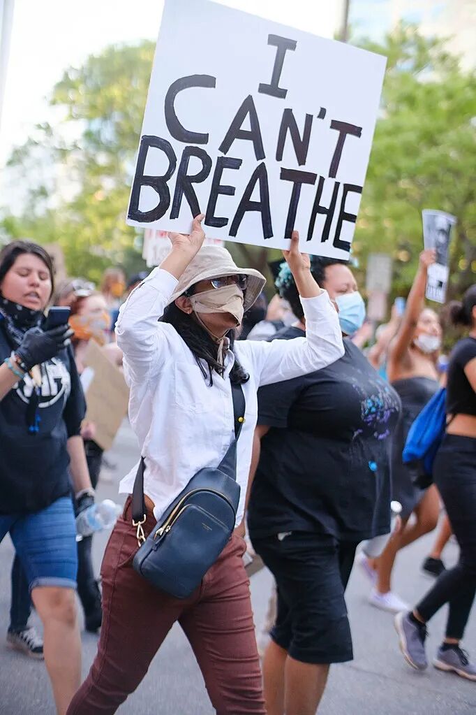 如果你還不知道這次的示威因何而起,可以上網搜一搜喬治·弗洛伊德的名字。上周一,美國國殤日這天,明尼蘇達州明尼阿波利斯市警察三分局收到一家店鋪的報警,說有人試圖用一張20元假鈔購物。四名趕赴現場的警察在這家店的附近碰上了弗洛伊德。