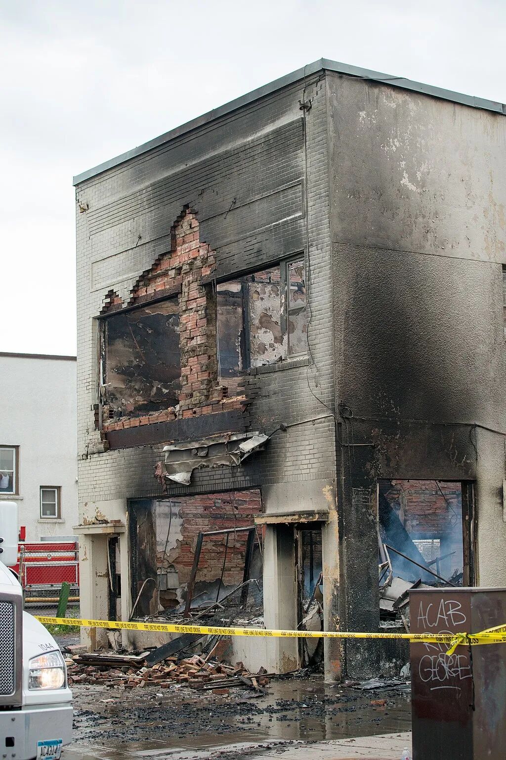 5月28日明尼阿波利斯被抗議者焚毀的建築