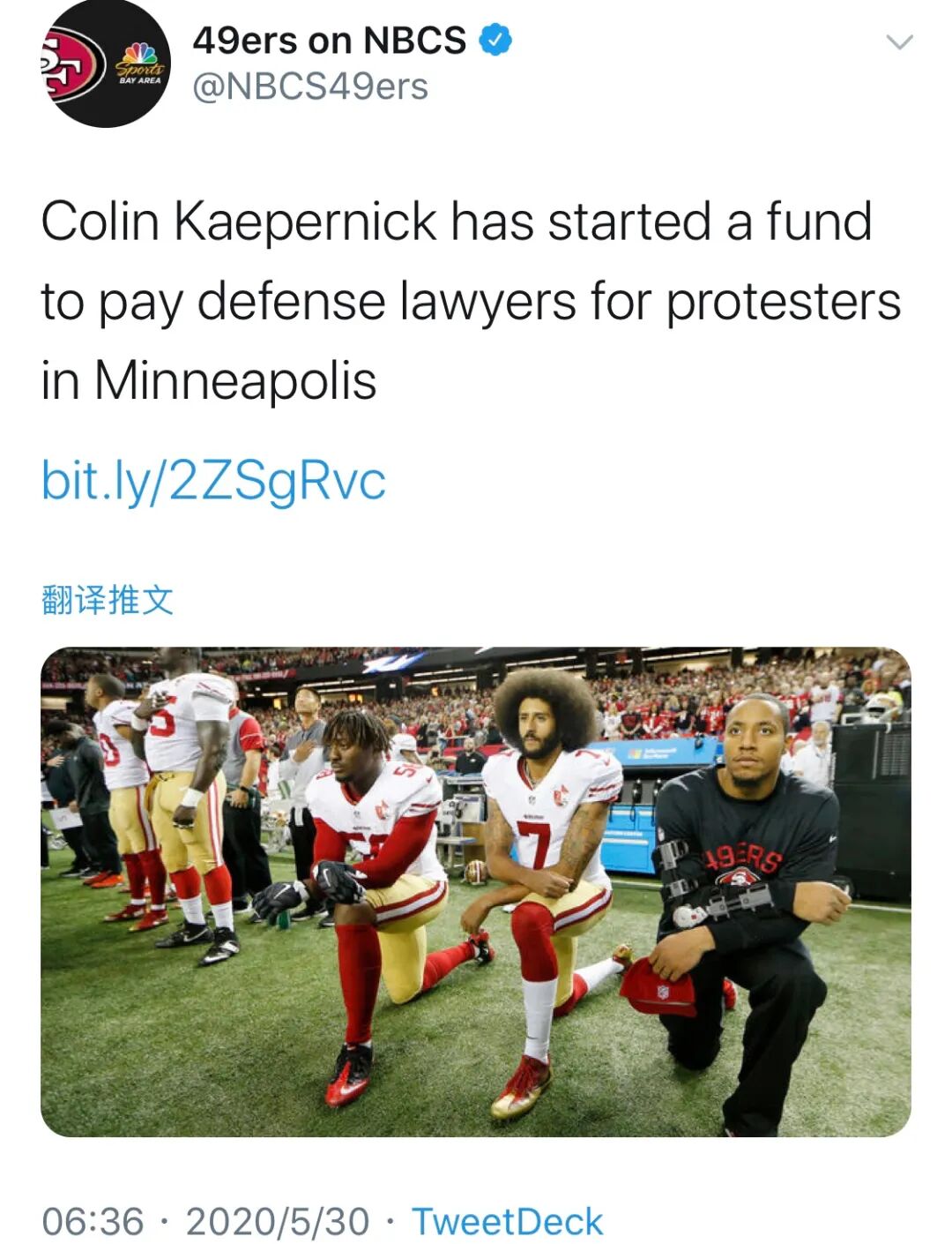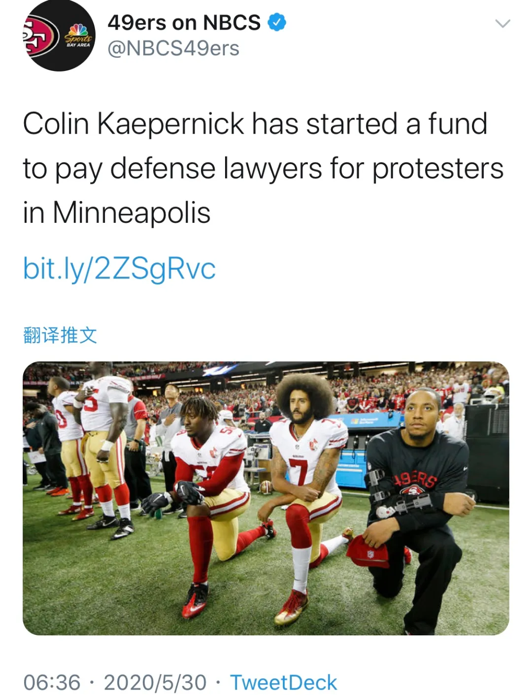 當天下午,明尼阿波利斯示威者們就砸了一家Target大賣場,當天晚上他們燒毀了警察三分局的辦公樓。類似的打砸搶燒在接下來幾天全美很多地方的示威中繼續上演,情況看似隨時可能失控,這時候出現了警察單膝跪地的鏡頭。