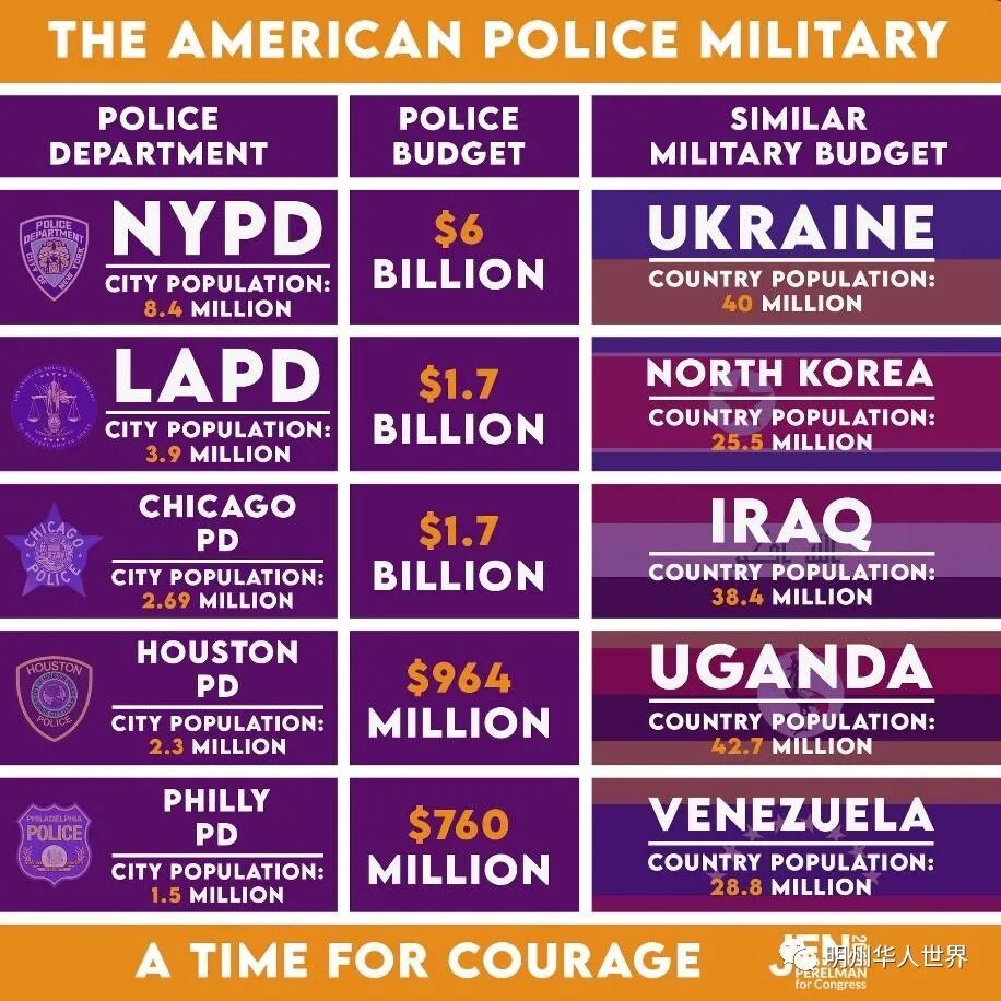 美国部分市警察局预算与外国军费预算对比表(https://jen2020.com/)