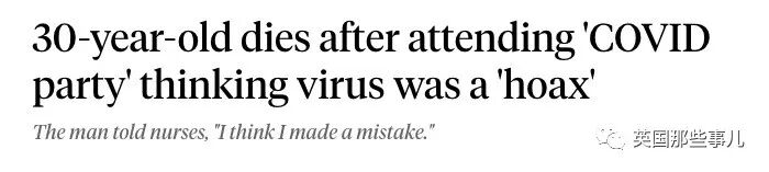 在重病之後,他後悔不已,跟護士說,他之所以感染病毒,是因為參加了一場“新冠派對”。