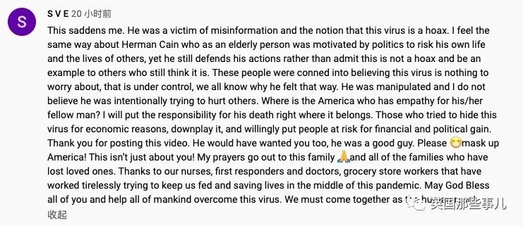 他表示,“就因為他選擇不戴口罩,他去世後就要被網絡攻擊嗎?不管我們跟另一個人的觀念是否一樣,看到別人去世的悲劇,總還是要有同情心吧。那些在一個逝者的頁面留言I told you so的人,我看不起你們。