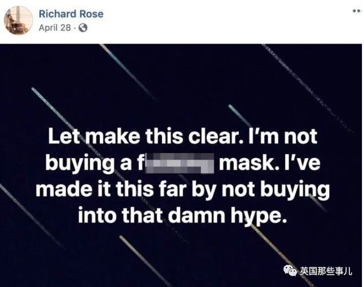Richard Rose之前不相信口罩有必要,但我們都知道,如果他現在還能說話,肯定不會再那麼認為了。他犯了錯嗎?是的,但我們現在要羞辱他嗎?不要。”