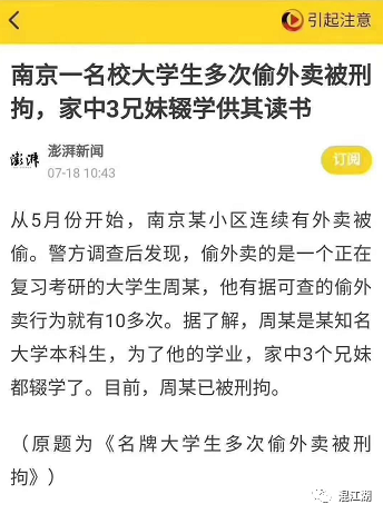 贫困大学生偷外卖盒饭被刑拘?怎么觉得我们比他还丢脸!