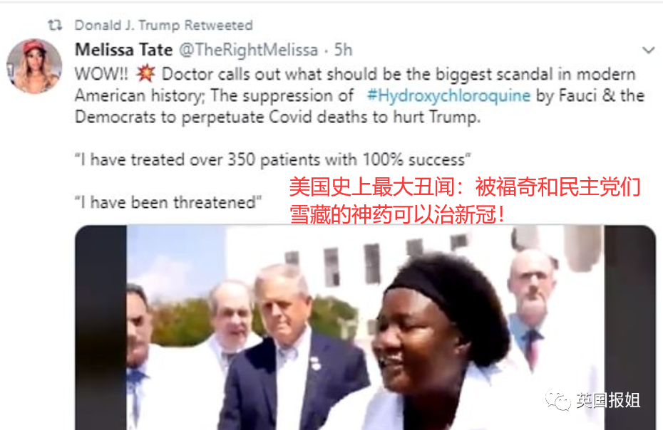 川普大力支持一名恐同神棍庸医,大骂口罩是阴谋论,推崇抗疟疾用的羟氯喹为治新冠神药,科学家欺骗美国老百姓...