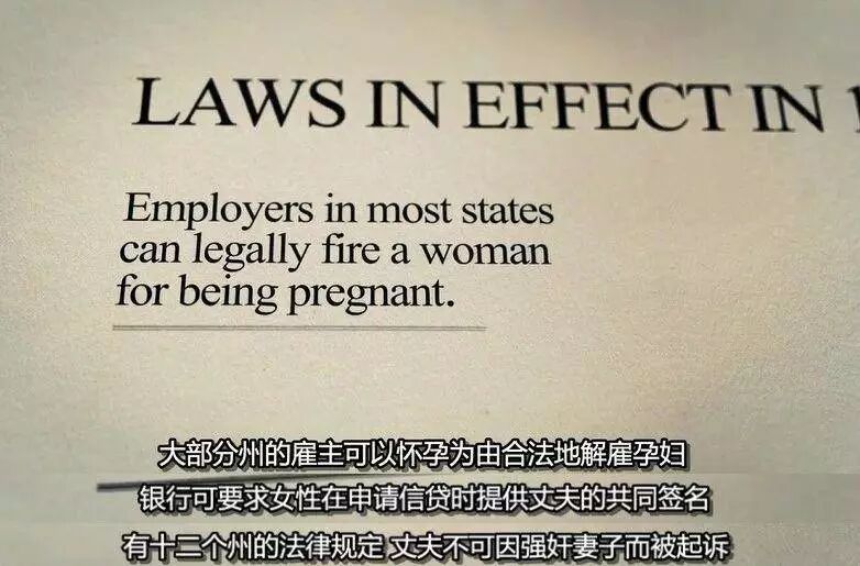所有的一切,只“因為你是女人”。 她不得不暫時放棄夢想,到一所大學任教。70 年代時,她新增了一門“性別與法律”的課程,見識到了越來越多的性別歧視。 當時的男人在歧視女性後根本不用道歉,因為法律允許。比如以下幾條: ▲圖片來源:紀錄片《女大法官金斯伯格》