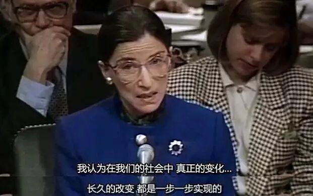 1、大部分州的雇主,可以懷孕為由合法地解僱孕婦; 2、銀行可要求女性,在申請信貸時提供丈夫的共同簽名; 3、有 12 個州的法律規定,丈夫不可因強姦妻子而被起訴。 丈夫是家庭的主人,女性必須無條件地服從,這種思想的條款比比皆是。雖然當時美國的科技冠絕全球,但某些思想仍停留在中世紀。 02 改變女性地位 70年代,是美國女性大覺醒的時代,許多女性走上街頭,憤怒地控訴性別歧視。但魯斯性格羞澀,她沒有採用這種轟烈的方式,而是想到了更有效的方法。 美國的法律採用判例法,當最高法院針對某個典型案件判決後,低級的法院可以按照先例進行判決。 魯斯毅然放棄了優渥穩定的教授生活,在別人的冷眼不屑中,打破先例成為了律師。 她想通過一個個典型案件的勝利,從法律的根源上改變女性被動的局面。 1973年,空軍少尉薩朗,在服役時發現男同事們有住房津貼,但她卻沒有。她去向上級理論,結果被告知:“你能獲得參軍的機會,已經三生有幸了。” 是不是聽着很熟悉?與現在的福報有異曲同工之妙。薩朗找到了魯斯,在州法院敗訴後,上訴到了最高法院。 ▲圖片來源:紀錄片《女大法官金斯伯格》
