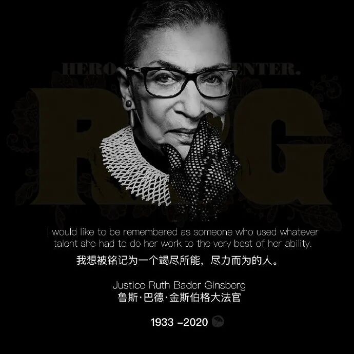 當地時間9月18日,美國聯邦最高法院在一份聲明中宣布,美國最高法院大法官金斯伯格(Ruth Bader Ginsburg)因轉移性胰腺癌的併發症去世,享年87歲。 白宮等美國政府機構降半旗致哀。 大批美國民眾在最高法院前聚集,緬懷這位大法官。 這位87歲的老太太到底是怎樣的一個存在? 她的去世為什麼會讓美國朝野震動? 本文經授權轉載自:世界華人周刊 微信ID:wcweekly 作者:令狐空 她一生都在戰鬥,為自由而戰,為平等而戰,為生命而戰,這個87歲老太太,活出了大寫的傳奇。 /// 張小嫻說:“當青春和美貌漸漸離你而去,只有智慧與覺悟和你長相依伴。”深以為然。 現實中的網紅千篇一律,長發若瀑肌膚如雪,把她們的頭像放在一起就是最高難度的連連看。 但在大洋彼岸的美國,卻有一位老奶奶,牢牢占據了第一網紅的地位,甚至成為了某種流行文化。 ▲她被P成雷神 在美國民眾的眼中,她就是勇猛無敵的雷神,身手矯健的黑寡婦,守護正義的神奇女俠。 ▲被P成神奇女俠 人們在T 恤上畫着她,在馬克杯上印着她,甚至乾脆把她紋在胳膊上。 當她在前年摔斷了 3 條肋骨後,全美的年輕人都急了。 有些粉絲直接將她的人偶包裹起來,祈禱她早日康復。更有粉絲放言:只要她需要,可以向她捐獻骨骼和重要器官。 但與民眾形成鮮明對比的是,美國總統川普恨透了她,公然稱她為“美國最高法院的恥辱”。