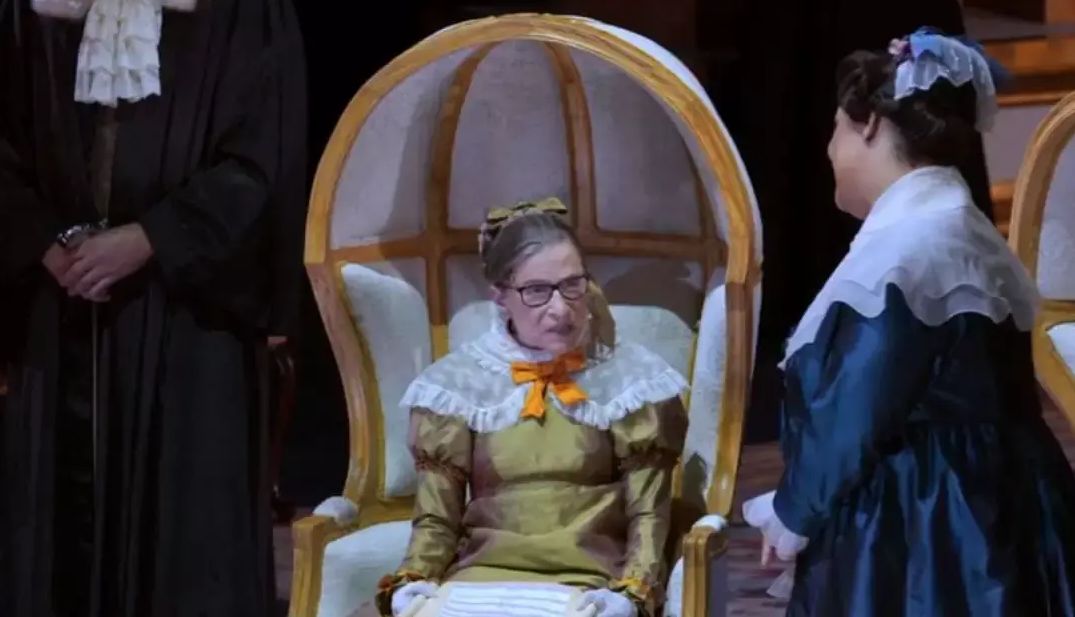 時光向來無情,歲月無可挽留。在他們結婚56年的時候,馬丁染上了重病,寫給了她最後一封情書: “最親愛的魯斯,從我們相識的那天起,我從未停止過對你的欣賞和愛慕。但現在,該是我告別的時候了……” ▲圖片來源:紀錄片《女大法官金斯伯格》 世界上沒有神仙眷侶,因為人都會老去。但他們的愛情,那一封封情書,連神仙讀了也會羨慕。 04 瘋狂膜拜,臭名昭著 失去了一生至愛,魯斯並沒有就此消沉。即使在她80多歲高齡時,也毫無老年的頹廢與暮氣,愈發珍愛人生,品味生活中的點點滴滴。 事實上,她的人生已經遭遇了多次傷痛。 1999年,她被查出結腸癌,她竟然沒有請一天病假,而是在工作的間隙完成了手術、放療和化療。 2009年,她又被查出了胰腺癌,在紐約手術後僅僅留院觀察了10天。然後就回到了崗位上,連一次庭審都沒有錯過。 經歷了風風雨雨,她不改一絲堅韌,更加熱愛生活。 她會去聽喜愛的歌劇,打扮成歌劇中的人物,甚至登台參演歌劇中的角色。 她一周去三次健身房,舉啞鈴,做舒展運動,連續做 20 個俯臥撐。同齡人感慨,一個俯臥撐也做不了。 ▲圖片來源:紀錄片《女大法官金斯伯格》 看到有些年輕人把自己的頭像紋在身上,她俏皮地說:“她們把我紋在身上,不會後悔嗎?” 《周六夜現場》的主持人,穿戴着與她相同的衣服和眼鏡,對她瘋狂地模仿。她看後笑道:“就只有領子像。” 有些人肯定會疑惑:都已經這麼老了,為什麼還不退休享受生活呢? 她當然想要生活,但更加在乎女性的權利。如果她選擇退休,9名大法官中將沒有一名女性。 在三權分立的美國,為了權力平衡,一共有9名大法官。大法官為終身制,即使是總統也無法將他們免職。 ▲圖片來源:紀錄片《女大法官金斯伯格》 由於大法官的變更,近些年的最高法院越來越右向,對待女性越來越苛刻。魯斯則大膽地站出來一次又一次提出了異議。 比如在2013年,多數法官同意:雇主可以宗教信仰為由,拒絕向雇員提供避孕醫療保障。她則說道:“女性能平等地參與本國經濟及社會活動,正得益於他們對生育的掌控。”