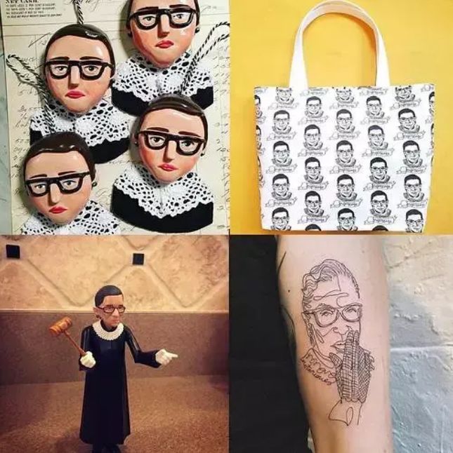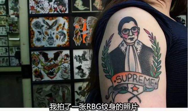 即使是普通民眾,也感到了美國平權的倒退。人們越來越渴望聽到魯斯的異議,甚至打出了“無魯斯,無真相”的標語。 粉絲們愛她入骨,當然也有人恨她入骨。 馬克·勒文說:“她完全不尊重我們的憲法傳統。”邁克·薩維奇說:“這個人是女巫、是惡棍、是女魔頭。” 川普就更狠了,直接說她是最高法院的恥辱。 ▲各種周邊和紋身足以窺見粉絲對她的喜愛 但政客們越討厭她,民眾們就越愛她,甚至給她起了個綽號:“臭名昭著”的 RBG(魯斯全名Ruth Bader Ginsburg的縮寫)。有關她的一切,都能輕易成為美國的網絡爆點。 2015年,她被《時代》周刊評為“年度全球100位最具影響力的人物”,她是唯一入選的最高法院大法官。 好萊塢甚至將她的生平故事改編成了電影:《性別為本》,在前年12月份上映。