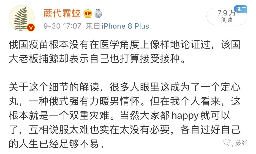 一个是预防的疫苗,一个是治疗的方法。两者都没有通过正规严谨的现代医学评估,就和强有力的大国首脑扯上了关系,区别只是在普京主观上灌输了疫苗的权威而川普在客观上吹捧了单克隆的价值。