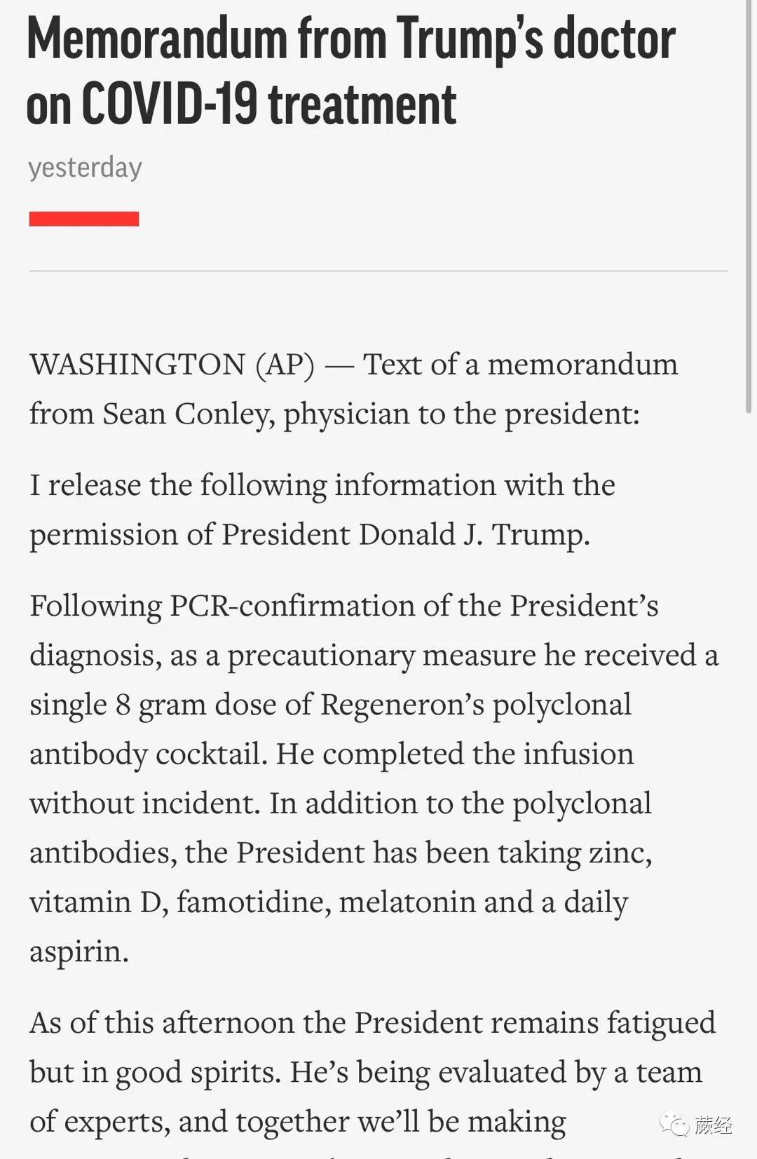 川普自身的素养多少还能理解,否则他也不会被如此kawaii地昵称为懂王了。但他身边顶级水准的医疗团队也会作出这样的决策,匪夷所思。当然完全不能排除他们是在川普的强烈要求下不得已为之,但如果真是那样,也只能再度一声长叹了。
