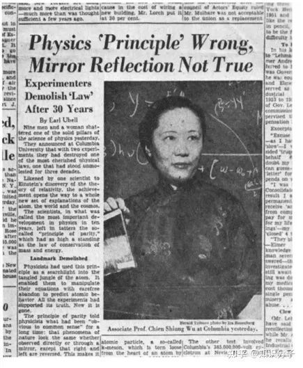 2001年哈佛博士论文 揭示“吴实验”原始记录_腾讯新闻 (qq.com) 吴健雄:在宇称不守恒发现中的不朽贡献(上)| 王丹红专栏 - 知乎 (zhihu.com) 李政道在1986年的文章《破缺的宇称》中写道: 吴健雄领导实验的 “一石三鸟”,1957年12月11日 ,杨振宁在瑞典科学院诺贝尔演讲《物理学中的宇称守恒及其他对称定律》中有提及,他说(P86):“宇称守恒定律的崩溃使涉及物理学中对称定律的一系列问题显得突出了。现在我们就来概括性地简单讨论一下这些问题。正如李政道博士将要讨论的,吴健雄、安布勒和她们的合作者的实验也证明了的,对β衰变来说,电荷共轭不变性也不成立。对弱相互作用来说,另一类对称性即时间反演不变性目前正在进行实验研究......” |