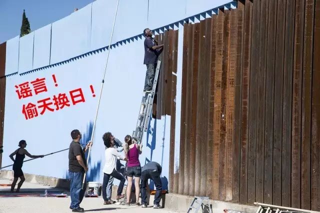 这幅图还真和美墨边境、美国大选、隔离墙有关,它发生在今年5-6月份,是一个以“消除边界”为主题的反川普筑墙言论的行为艺术。[3]