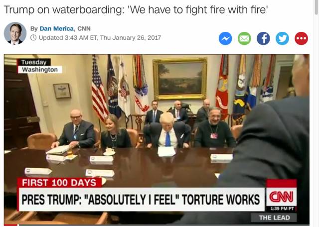 川普總統今日告訴ABC新聞,酷刑絕對有效,美國應該“以毒攻毒”打擊恐怖分子。川普稱有“最高級別的情報官員”告訴他酷刑確實有效,儘管美軍方公開表示這不是事實。