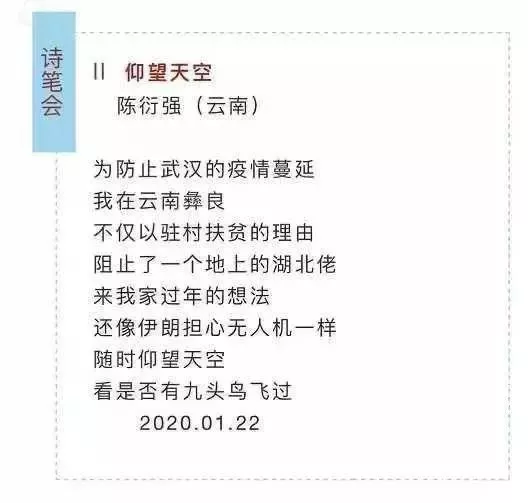陳衍強是一名體制內的詩人,冠有多個頭銜:中國作協會員,還是雲南彝良縣文聯主席,《彝良文學》主編。因為一場災難造成的同胞間互相歧視,成了這位詩人洋洋得意的炫耀、值得謳歌的美德。如果說陳衍強還只是自娛自樂的愚昧,下面的這位就是赤裸裸的諂媚了。這是本次疫情的重點防控城市,湖北黃岡浠水縣政法委一位幹部寫的,全詩如下:——此詩獻給戰鬥在抗疫情一線的浠水縣的黨員幹部