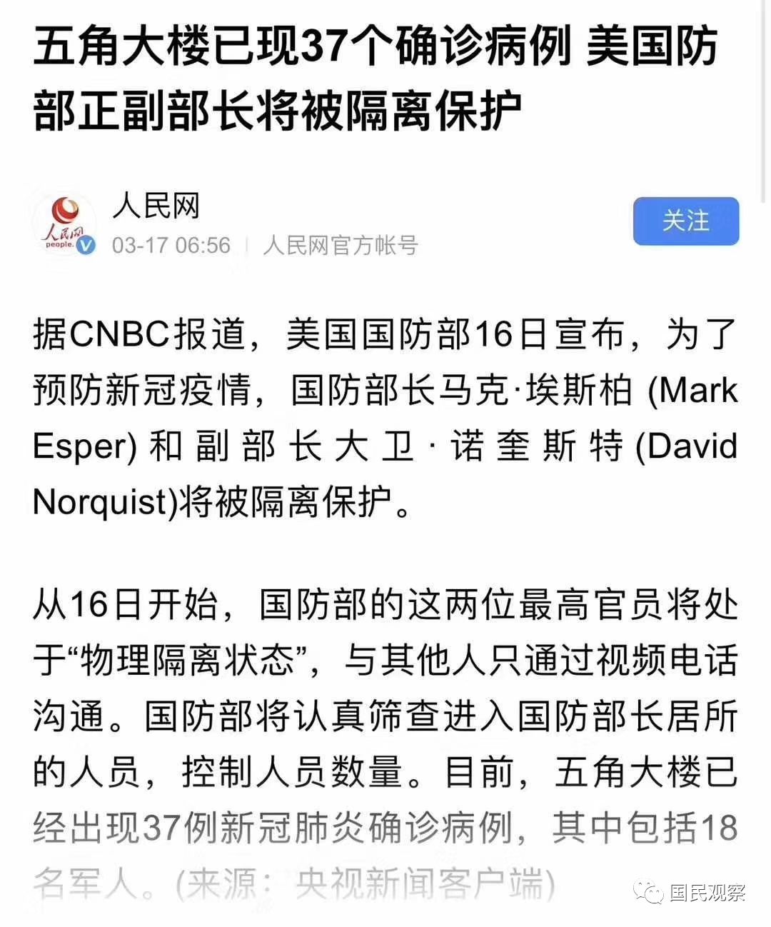 第二,中國病毒專家一再說,此病毒傳染時間15秒就可傳染一個人,軍運會10月份,兩個月後才發病,開什麼國際玩笑啊?!給中國人的智商留點面子好不好?? 3月17日美國累計確診6522例,仍在快速增長。網友評論:這美帝真夠狠的,投毒連自己的五角大樓都不放過,連自己人都打,投毒技術也太差了……要唐門絕技,哪部武俠小說?