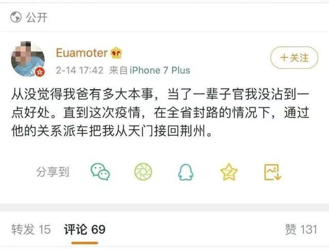 最見證歷史的應該算是湖北省司法廳原巡視員陳北洋,因為染上疫還要堅持居家隔離而被舉報,受到留黨察看,降級退休待遇處理。成為疫情中被處理的唯一一位退休高幹。