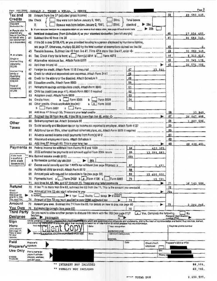 | 牛腰時報炒冷飯,說川普二十年了基本不交稅。這是2005年稅表 |