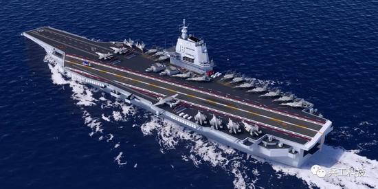 003型航母想象圖,從圖中可以看出,可以搭載固定翼預警機等新質作戰力量,使得我軍航母作戰能力大幅提升