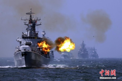 3/62   5月24日,中俄“海上聯合-2014”聯合軍事演習在東海海域進行了聯合反潛、聯合對海突擊、以及實際使用武器等戰術科目,涵蓋應對傳統安全與非傳統安全威脅領域的多個領域。圖為中俄雙方艦艇進行實彈射擊。中新社發 宋吉河 攝