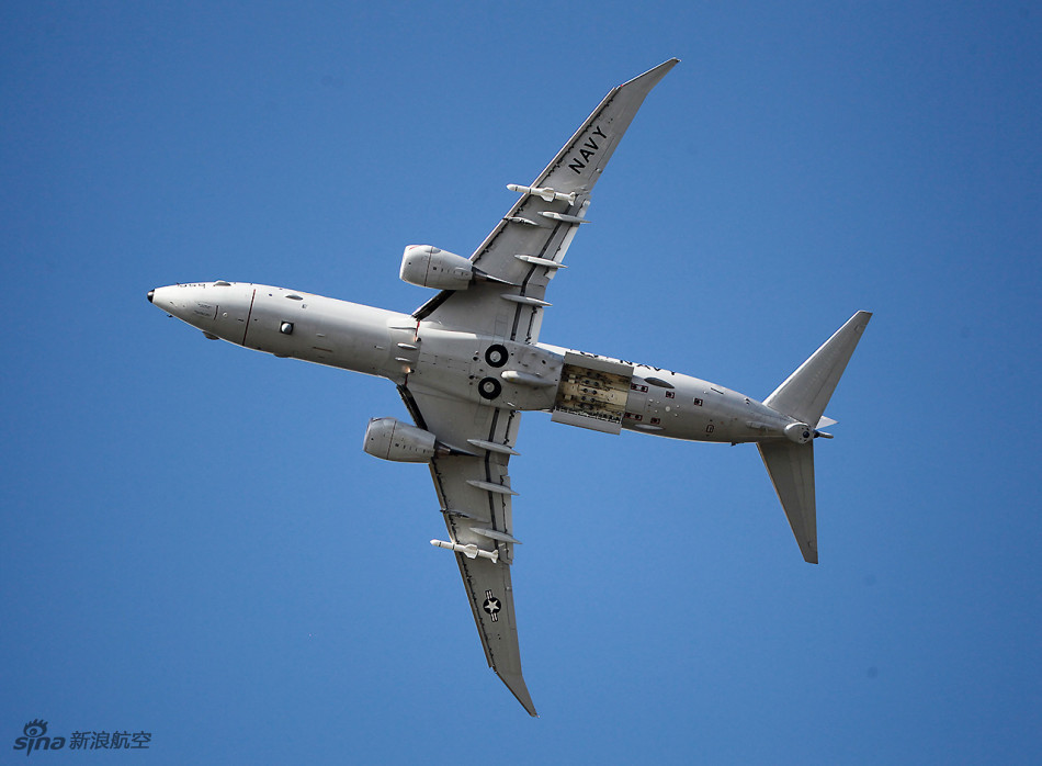 资料图:挂鱼叉导弹的美军P-8A反潜机