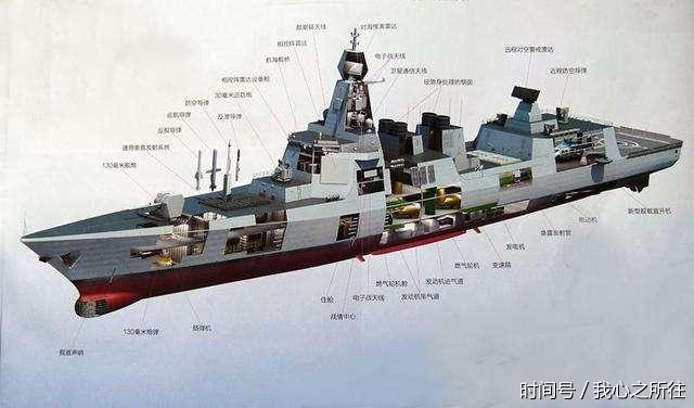 055大驅 從武器裝備上來講,055型導彈驅逐艦足足裝配了128具導彈垂直發射裝置,同時可以實現多彈種的共架儲運發射。相比之下,美國海軍提康德羅加級宙斯盾驅逐艦的垂髮導彈數量為122枚。128具導彈垂髮系統可以裝載多種型號的中國導彈,能夠兼容鷹擊-18超音速反艦導彈、海紅-9遠程防空導彈、海紅-16中程防空導彈和長劍-10對陸攻擊巡航導彈。此外,該艦尾部還有兩座機庫,可搭載兩架直升機,可有效執行反潛任務。這意味着055型導彈驅逐艦可以執行多種任務,不但為航母戰鬥群撐起了“保護傘“,而且從保護地面部隊到保護航母以及發動海戰無所不能。