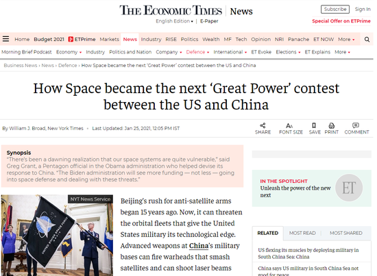 ![]() ![]() 作者署名:笑天 據印度媒體《經濟時報》網站報道,中國對反衛星武器的研發始於15年前,現在其可以威脅到使美國軍方擁有技術優勢的在軌衛星。中國可以發射先進的導彈摧毀衛星,也可以發射激光束使衛星上的精密傳感器失明。 特朗普提出的建立太空軍的倡議,仍然是電視節目上的經常提及的笑談。但太空軍是特朗普的前任小布什和奧巴馬總統做出戰略選擇的最終結果,其目的就是為對抗一個引起美國兩黨高度警惕的中國。 ![]() 奧巴馬政府時期的五角大樓官員格雷格·格蘭特稱,人們開始意識到,我們的太空系統相當脆弱,拜登政府將投入更多的資金用於太空防禦和應對太空威脅上。而保護太空領域的目標是在軌道上建立一個防禦體系,使其具有足夠的彈性,無論攻擊有多致命,這個體系都能很好地發揮作用,使美軍能夠在地球任何地方進行報復和反擊。這可能會阻止中國的攻擊,不過其面臨的問題是如何實現這種強大的威懾。 上周上任的拜登政府國防部長勞埃德··奧斯汀在參議院表示,他將繼續關注如何提高對日益強大的中國軍隊的競爭優勢。除此之外,他還呼籲美國在建造“天基平台”方面取得新的進展,並多次將太空稱為一個新的作戰領域。太空已經是大國競爭的競技場,奧斯汀說,中國是未來最重要的威脅。 新一屆美國政府也對利用航天企業家的創新作為加強軍力的手段表現出了興趣,奧斯汀在其參議院證詞中稱之為“與商業航天實體的夥伴關係”。奧巴馬和特朗普政府都採用了這一戰略,將其視為美國獨特的強化軍事實力的方式和美國軍隊的優勢。 但專家們對美國是做得太少還是做得太多產生了分歧。美國防部的鷹派幾十年來一直在遊說政府建立一支太空軍事太空隊,並呼籲增加武器開支。而軍控人員則認為,建立太空部隊加劇了全球緊張局勢,給了中國一個加快發展藉口。有些人還稱這是一個將增加戰爭可能性的草率舉動。 在過去的幾十年裡,特別是在里根政府的“星球大戰”計劃中,太空中的衝突常常被描繪成軌道上的戰爭。現在這些已經發生了改變。太空戰武器不再被視為環繞地球飛行,而是在安全的基地部署。其目標也不再是成群的核彈頭,而是成群的衛星,這些衛星在環繞地球運行時反覆出現的、可預測的路徑使其更容易被摧毀。現在一個最大的問題是,反衛星等行動是否會提高誤判和戰爭的風險。這場辯論才剛剛開始。 多年來,中國對美軍的研究越來越廣泛,尤其是對美軍2001年的阿富汗戰爭和2003年的伊拉克戰爭。美軍在這些戰場上的成功是由於其空間優勢,數千枚衛星制導炸彈和巡航導彈精確打擊了塔利班部隊和伊拉克的防禦工事。雖然五角大樓在太空軌道資產方面的優勢顯然是對中國的威脅,但這也可能是一種致命弱點。 華盛頓智庫戰略與國際研究中心的太空分析師托德•哈里森稱,中國已經看到了美國是如何投射力量的。也看到了美國的對手在太空領域基本上沒有設防。 中國從2005年開始進行反衛星試驗,在兩年內接連發射了兩枚導彈。在2007年,中國導彈摧毀了一顆廢棄的氣象衛星,當時導彈彈頭以驚人的速度撞向衛星。而布什政府最初幾乎沒有採取什麼行動。2008年,美國也發射了一枚尖端導彈,擊落了自己的一顆衛星,這是一次旨在向中國展示武力的行動。 中國共進行了十幾次反衛星試驗,包括打擊更高軌道的衛星試驗,從理論上講,這將使美國大多數級別的航天器處於危險之中。中國還尋求使其反衛星部隊多樣化。一枚導彈可能需要飛行幾個小時才能到達衛星軌道,這有可能使美軍有時間採取規避或報復行動。此外,攻擊衛星所產生的碎片可能會危及自己的航天器。因此,中國開始向衛星發射激光束,並研究其他定向能武器反衛星的方法。然而,所有這些技術都被認為需要數年甚至數十年的發展。 後來中國又有了新的方法。美國太空力量都是由強大的計算機在地面控制的。如果這些計算機被攻破,美國太空資產的大腦可能會退化或摧毀。與其他反衛星行動相比,這種方式的性價比更高。 在奧巴馬政府的第二個任期內,公開了所謂的“抵消戰略”,以利用美國的技術優勢應對中國和其他威脅。正如美國首先發展了龐大的核武庫,其次發展了智能武器一樣,這種所謂的第三次“抵消戰略”將通過研發機器人技術、高速武器等來獲得優勢。 官員們說,與早期不同的是,這項計劃的目標是減少對聯邦政府的依賴,而更依靠那些正迅速改變大眾世界的科技企業家。 ![]() 太空領域的進步是防禦性的:大量相對廉價的小型衛星和可回收的發射火箭,可將發射無數的目標仍中國應接不暇。奧巴馬政府已經將商業理念應用於美國宇航局,使宇航局成為企業發展的主要資助者。它正投入數十億美元用於研製私人火箭和太空艙,並將宇航員送入軌道。 美國軍方也加入了進來,這些受益者包括特斯拉創始人埃隆·馬斯克和亞馬遜創始人傑夫·貝佐斯。他們的航天公司——馬斯克的SpaceX和貝佐斯的藍色起源公司,試圖把過去一次性的火箭發射器變成可回收重複使用的,從而大幅降低發射成本。美軍官員認為,這些新系統將有可能在戰時迅速的發射衛星。 而第三次抵消戰略也試圖縮小衛星的尺寸。幾十年來,這些衛星已成為龐然大物。有些衛星項目的設計、建造、裝備、發射和使用成本在10億美元以上。這些衛星的天線幾